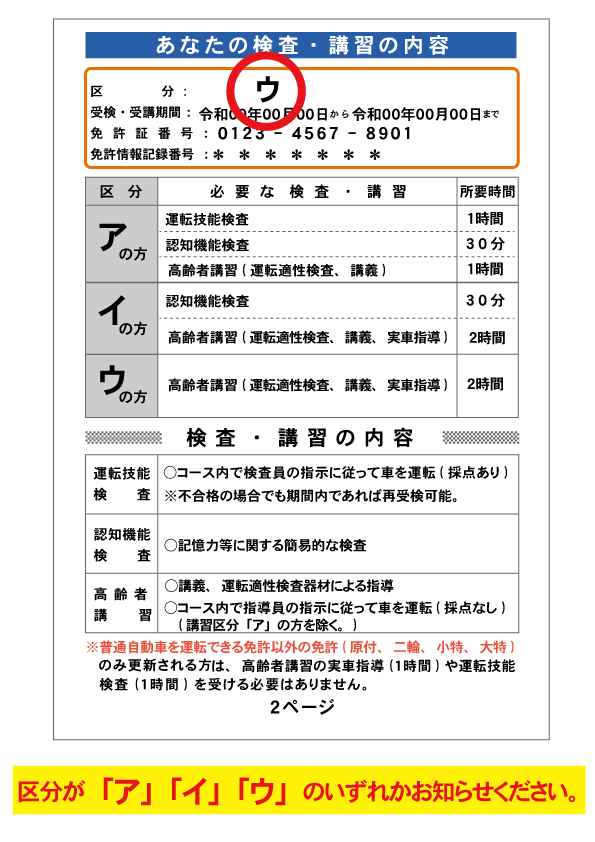 高齢者講習を受けることにより免除されますが、高齢者講習を受けなければ免許の更新(かきかえ)はできません。